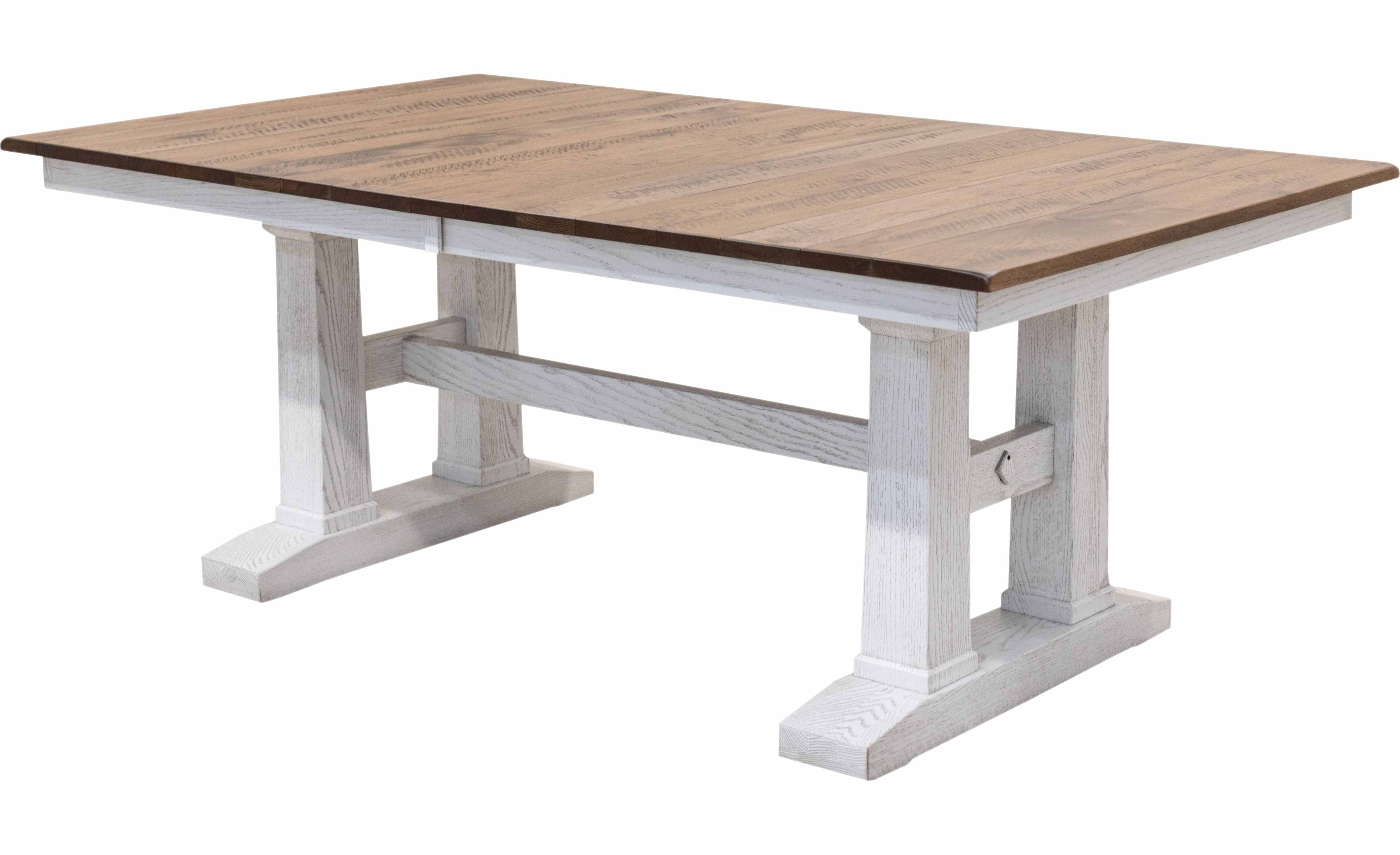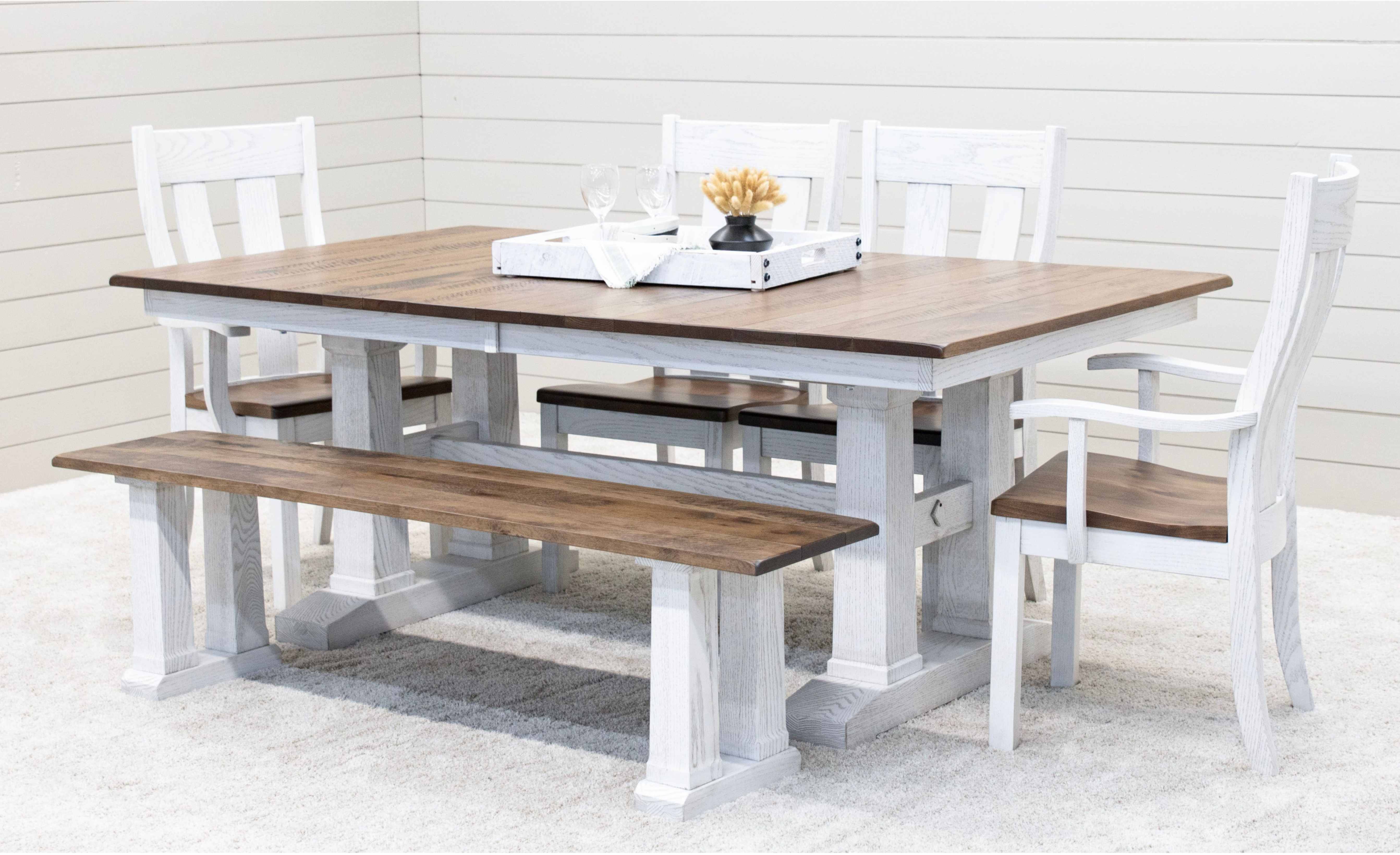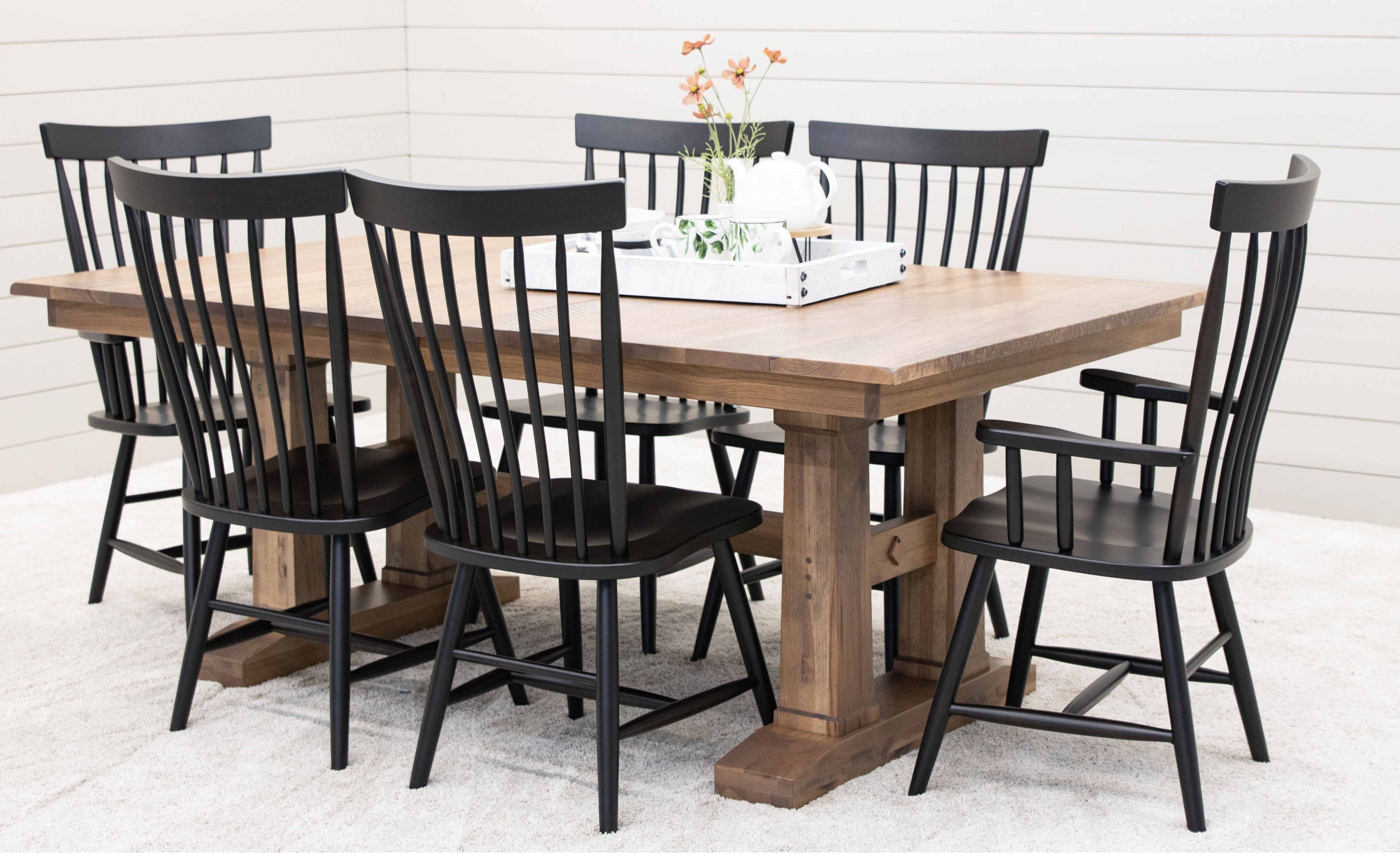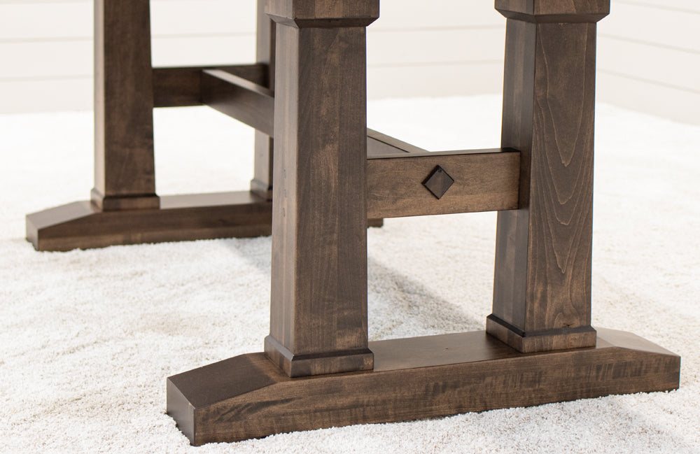 Every dining table is available in your choice of wood type and stain color. Wood options include Red or White Oak, Maple, Cherry, Hickory, Elm, and Walnut wood.