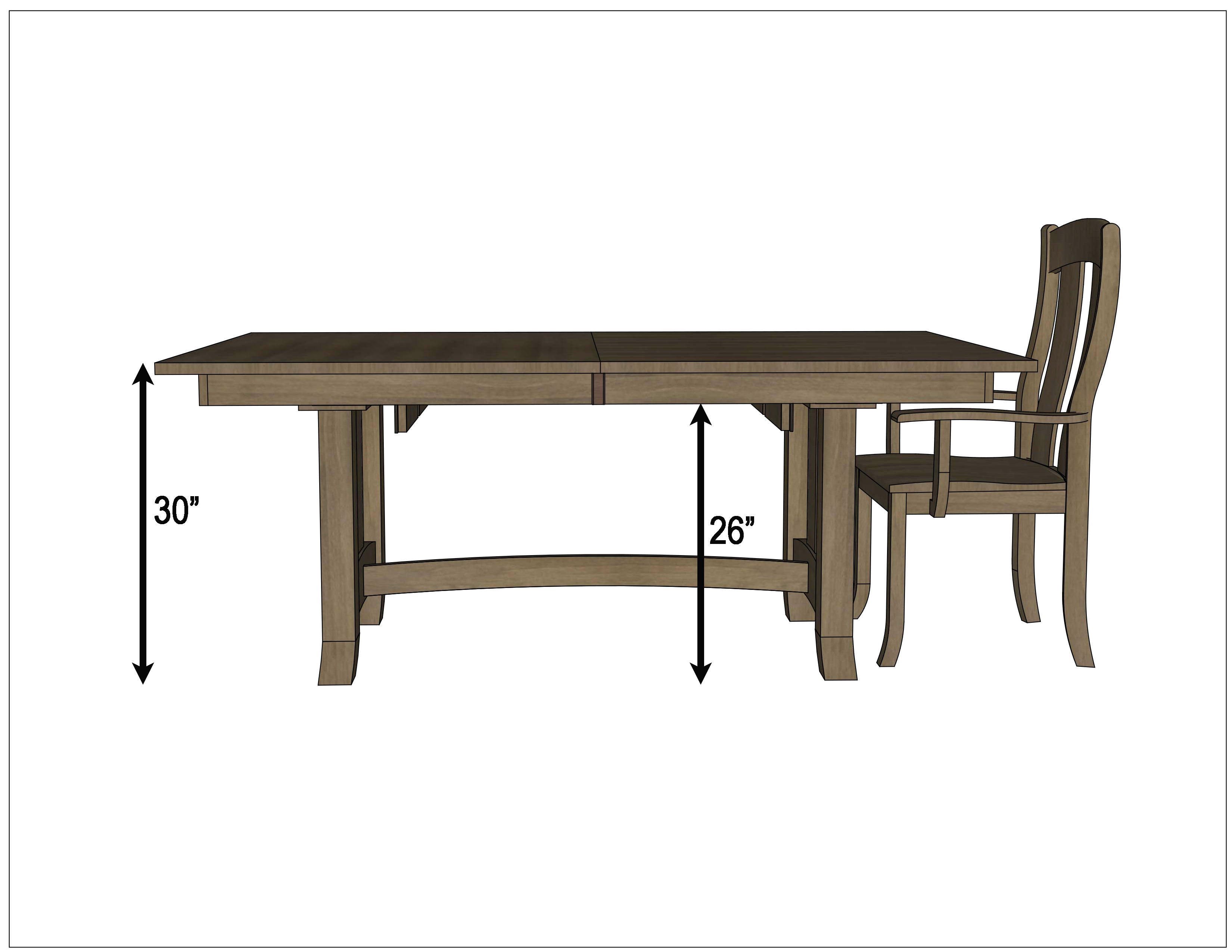 All regular dining tables are approximately 30" high to the top and approximately 26" from the floor to the table apron. For more details on this dining table, contact a member of our team.